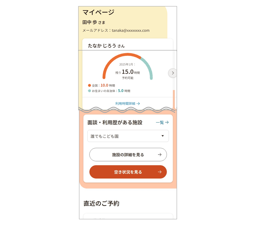 2. 市からの承認と初回面談の予約 市の承認後、アカウント発行メールが届きます → 「総合支援システム」で希望する施設を検索して初回面談を予約