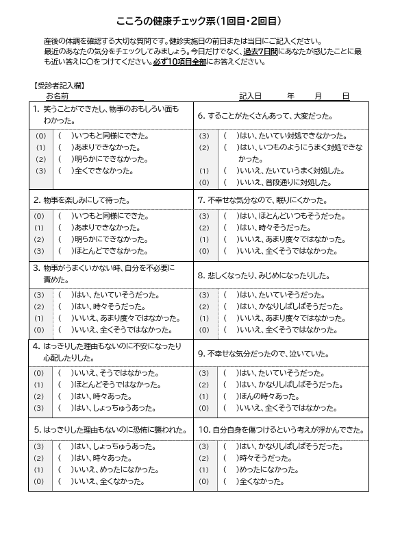 産後うつの早期発見新生児への虐待予防などを目的としているそうです。