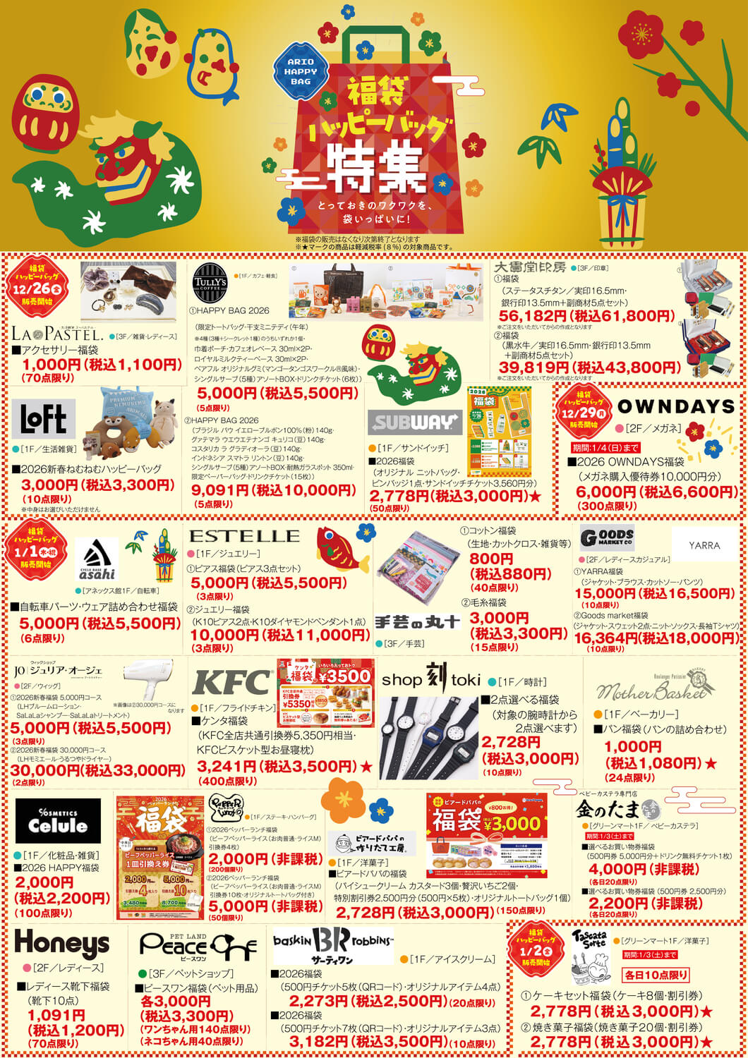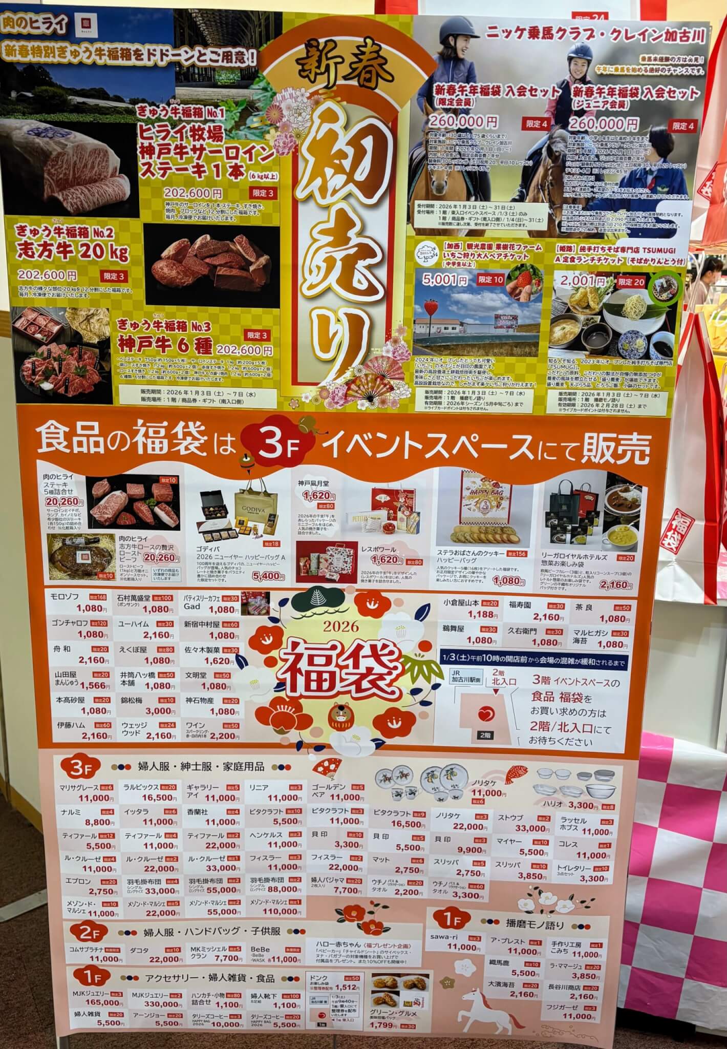 福袋ラインナップ。アリオ加古川イベント情報ページより