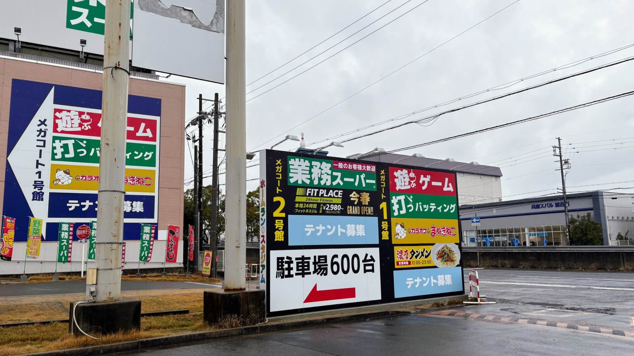 業務スーパー尾上安田店のあるメガコート2号館にできます。1号館にはホームランスタジアムがあるところ。駐車場にめちゃくちゃ余裕があるのが嬉しいですね。