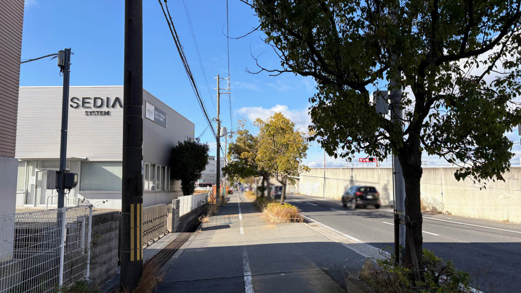 明姫幹線の安田東交差点から西のホームランスタジアムや業務スーパー尾上安田店の前を通る西行き側道沿いです。