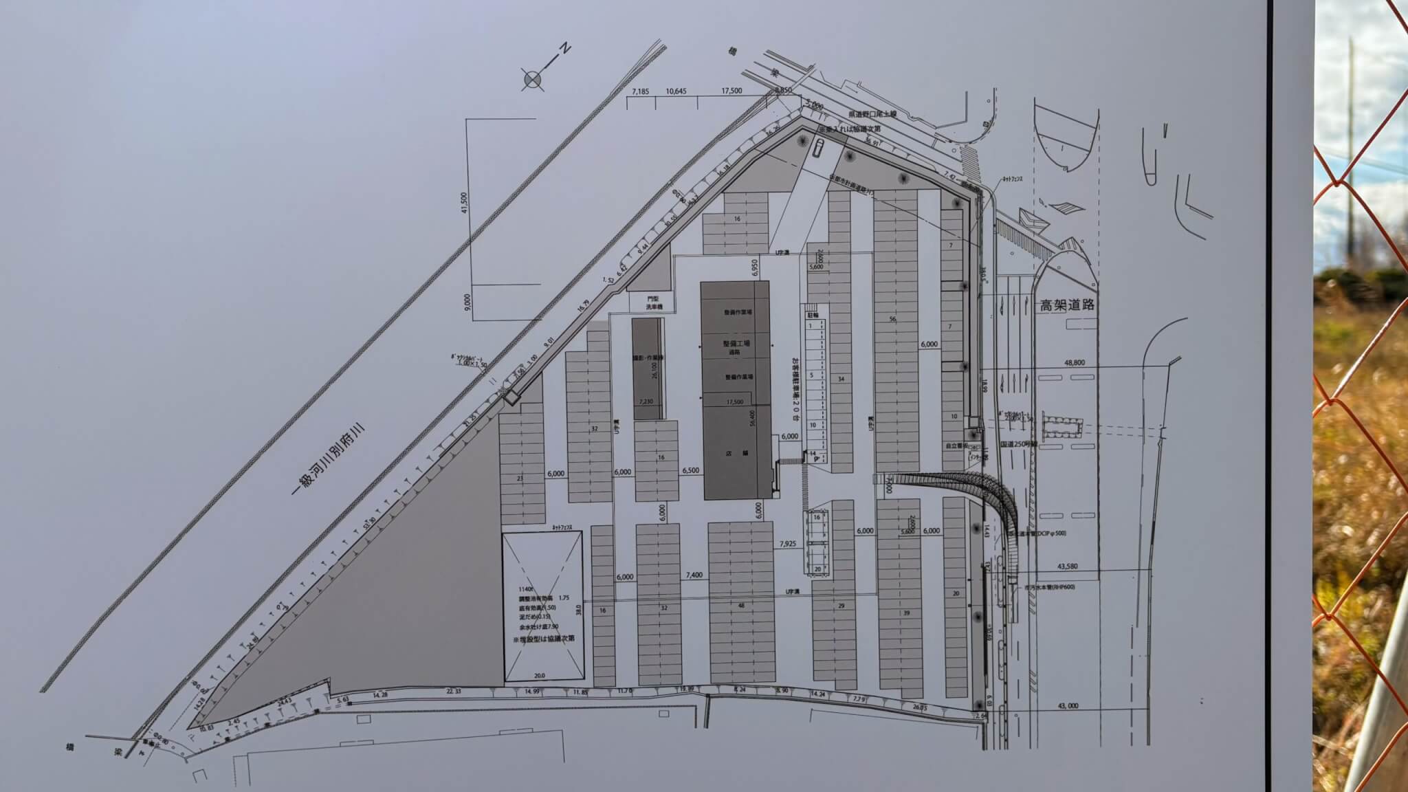 土地利用の計画図を見てみると、交差点から別府川沿いにかなり広い敷地で建築されるようです(1万8千平米超えの土地面積)。