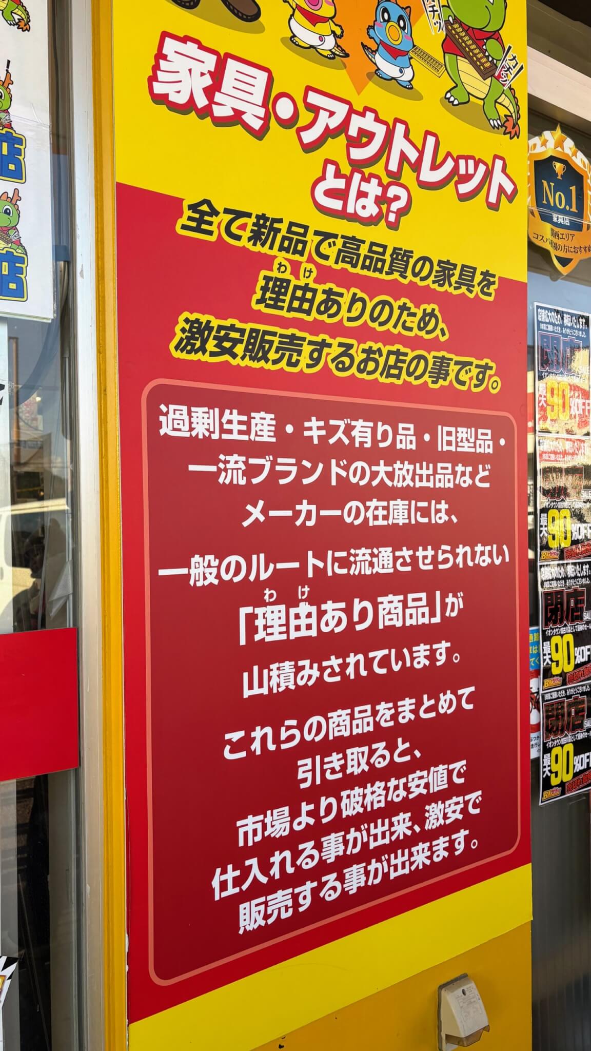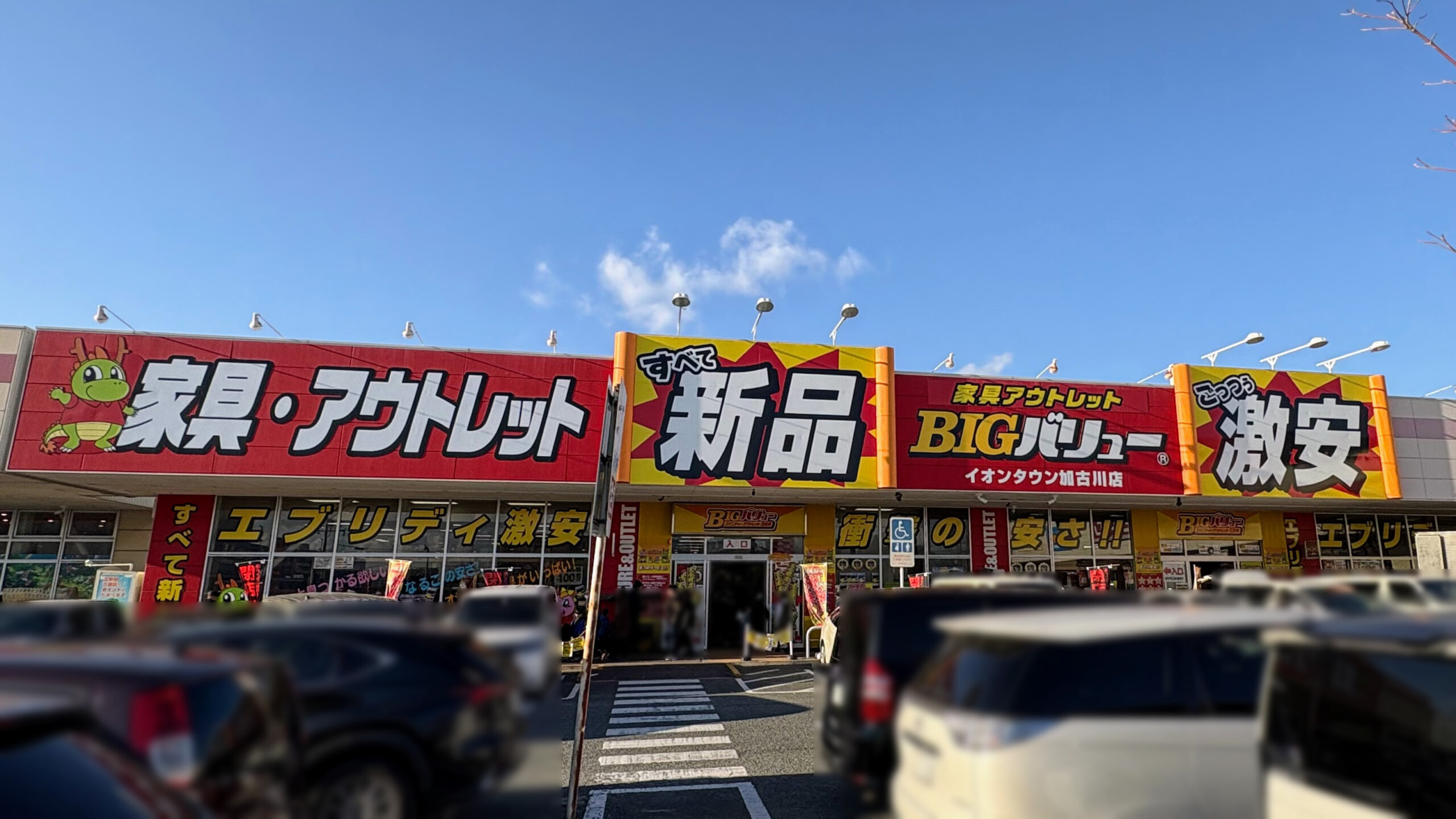 テレビでもよく紹介され、1円セールには行列のできるアウトレット家具店のBIGバリューイオンタウン加古川店店舗拡大移転のため閉店します!
