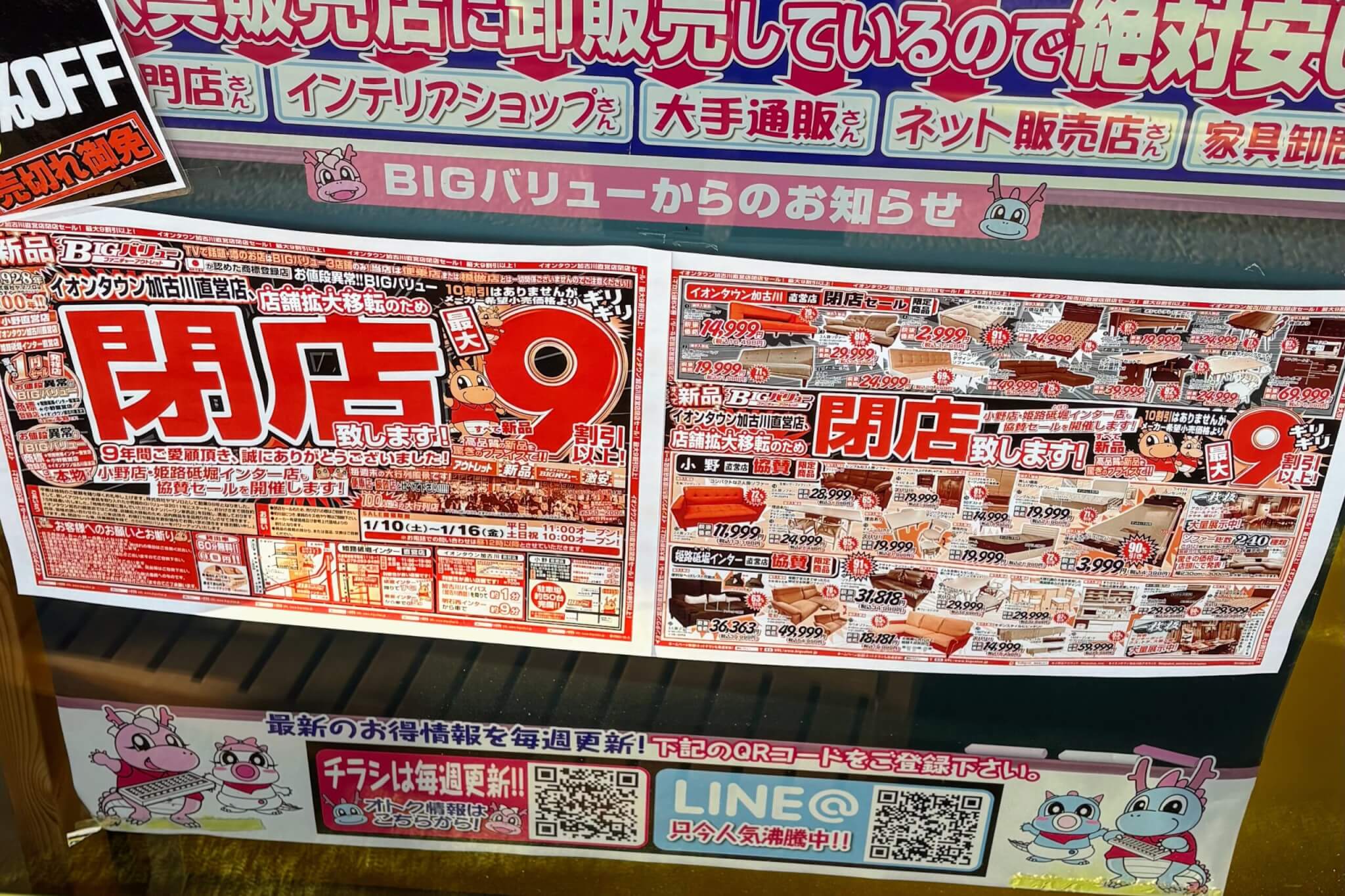 ビッグバリューイオンタウン加古川店の閉店セールのお知らせ