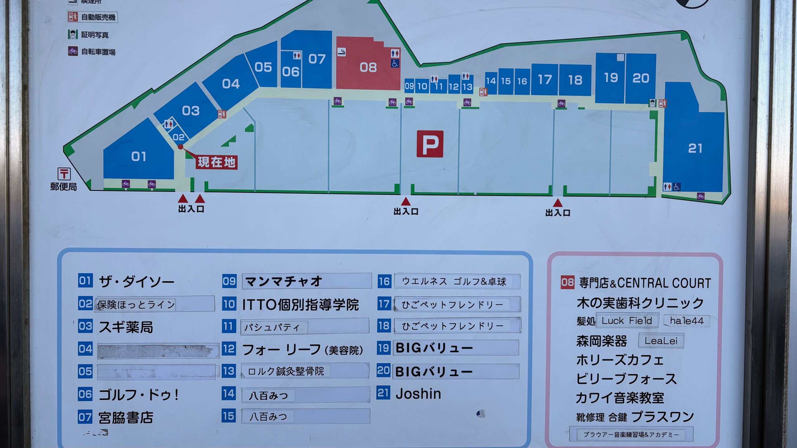 マップの19と20がビッグバリュー、04が別館です。2026年1月11日撮影