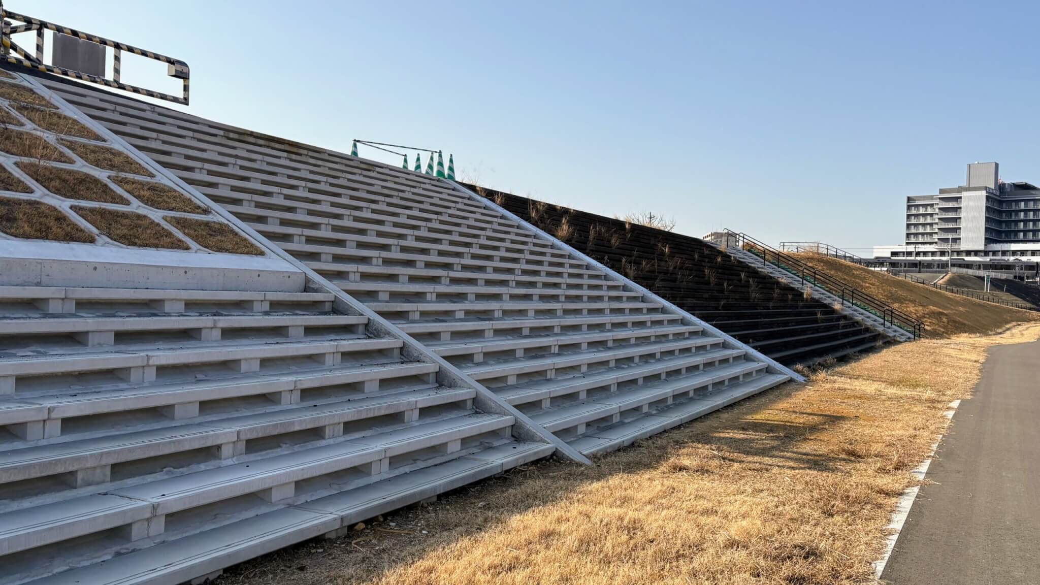 土手の上の空間がイメージしづらいのですが、思っていたより広そうに感じました。2026年1月19日撮影