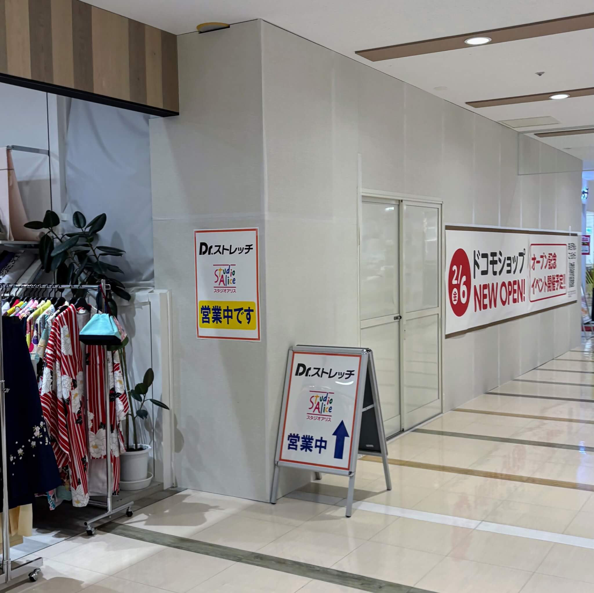 和服の京ろまんとDr.ストレッチの間です。奥にはスタジオアリスもあります。