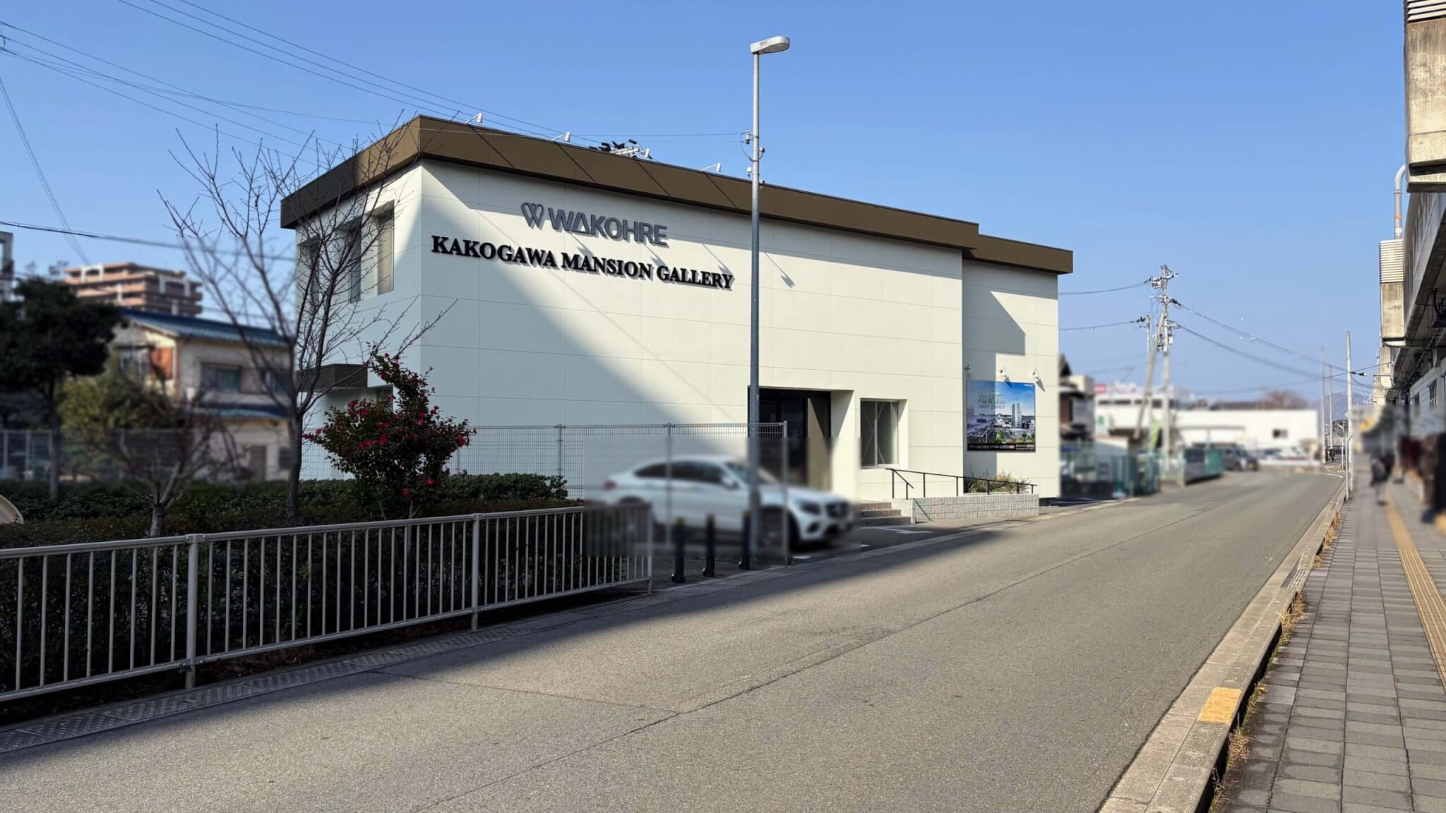 モデルルームの場所は線路を挟んで反対側、加古川の南西のあたりです。ワコーレ加古川マンションギャラリーと書かれています。