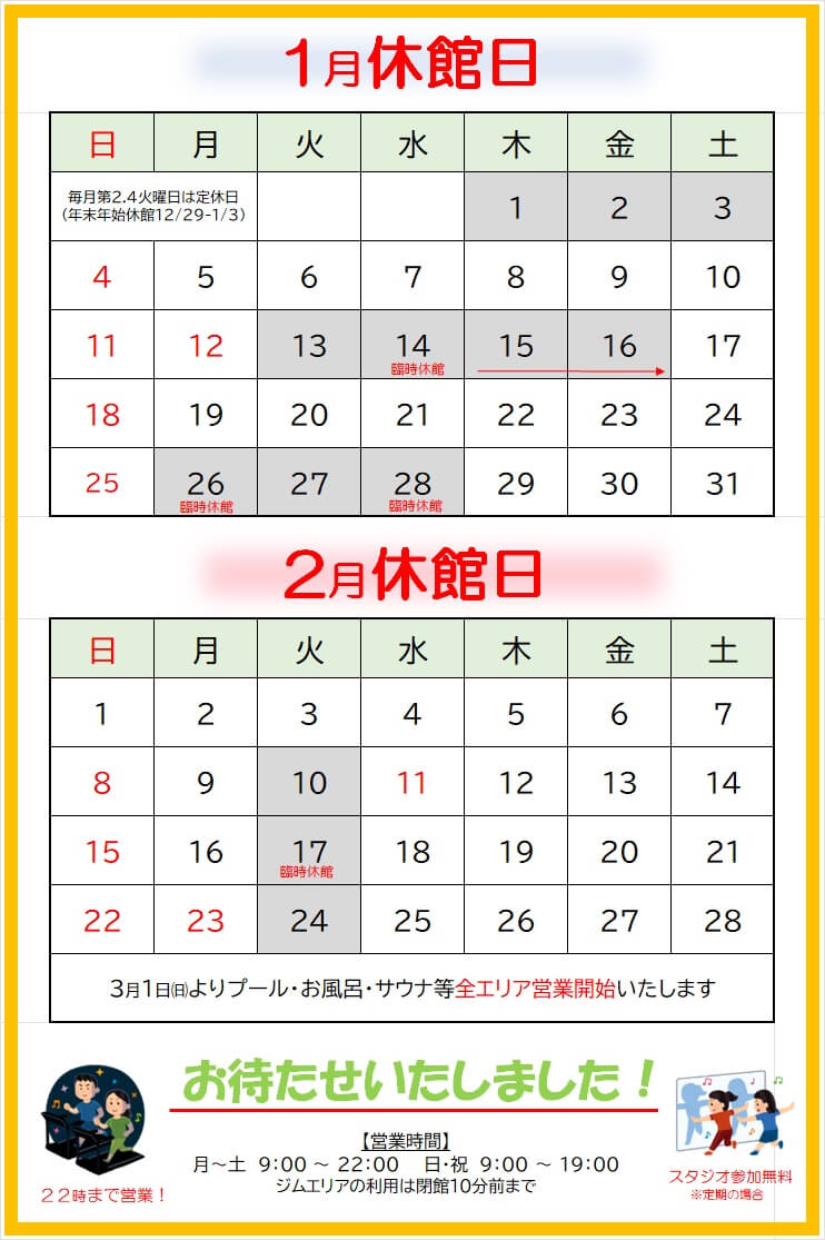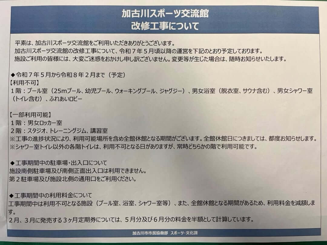 2025年5月から2026年2月末までプール・浴室・サウナ・シャワー室などの改修工事が行われていました。