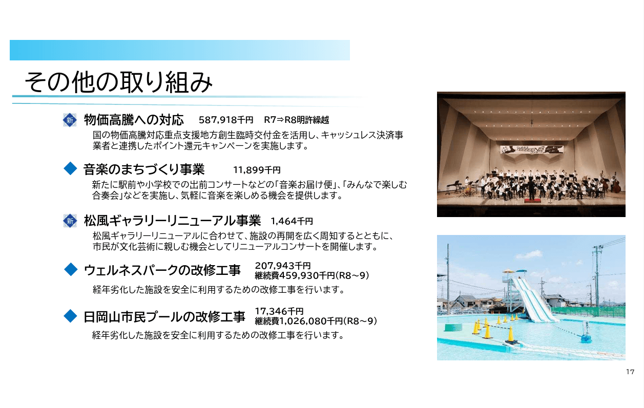また、リニューアルコンサートも予定されているようです。加古川市の令和8年度の予算案に記載されていました。