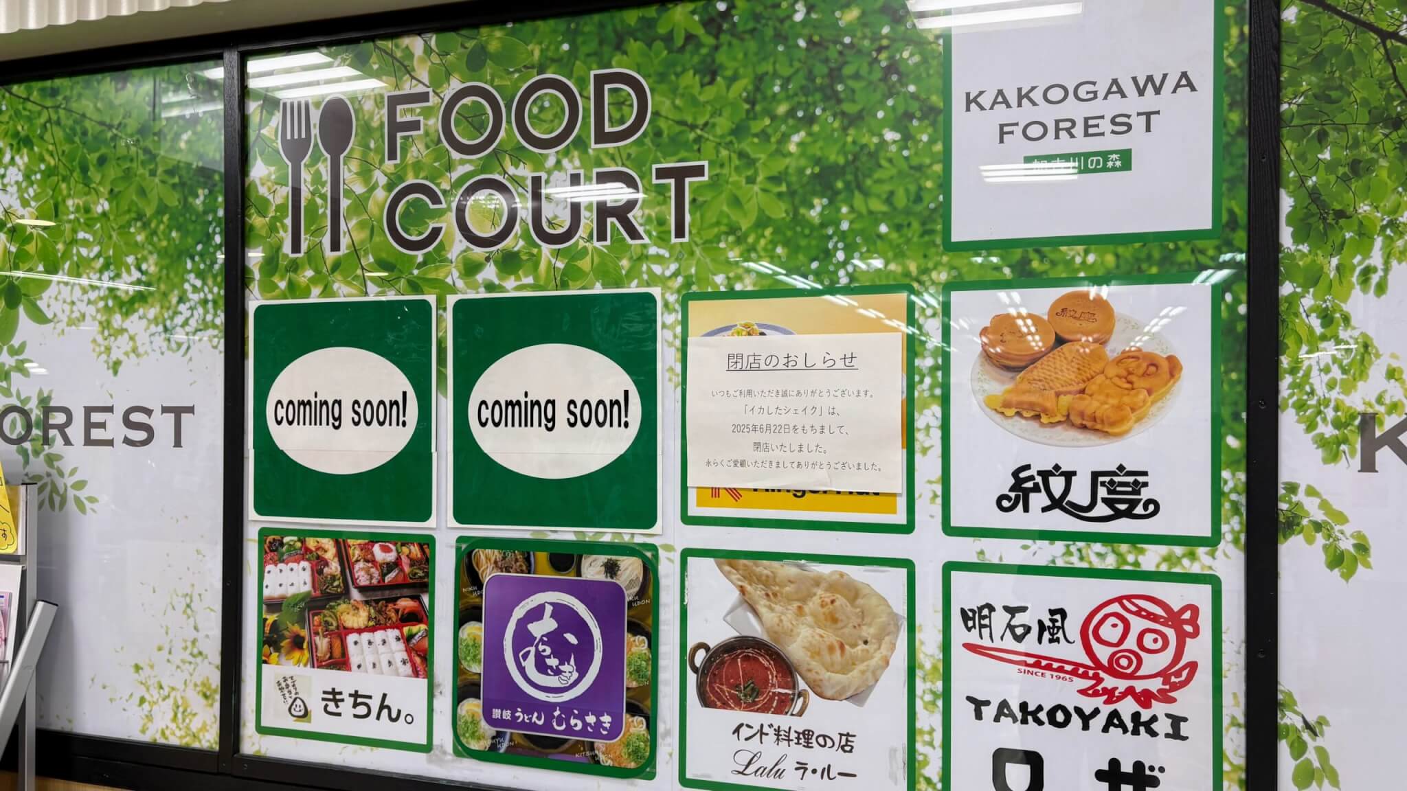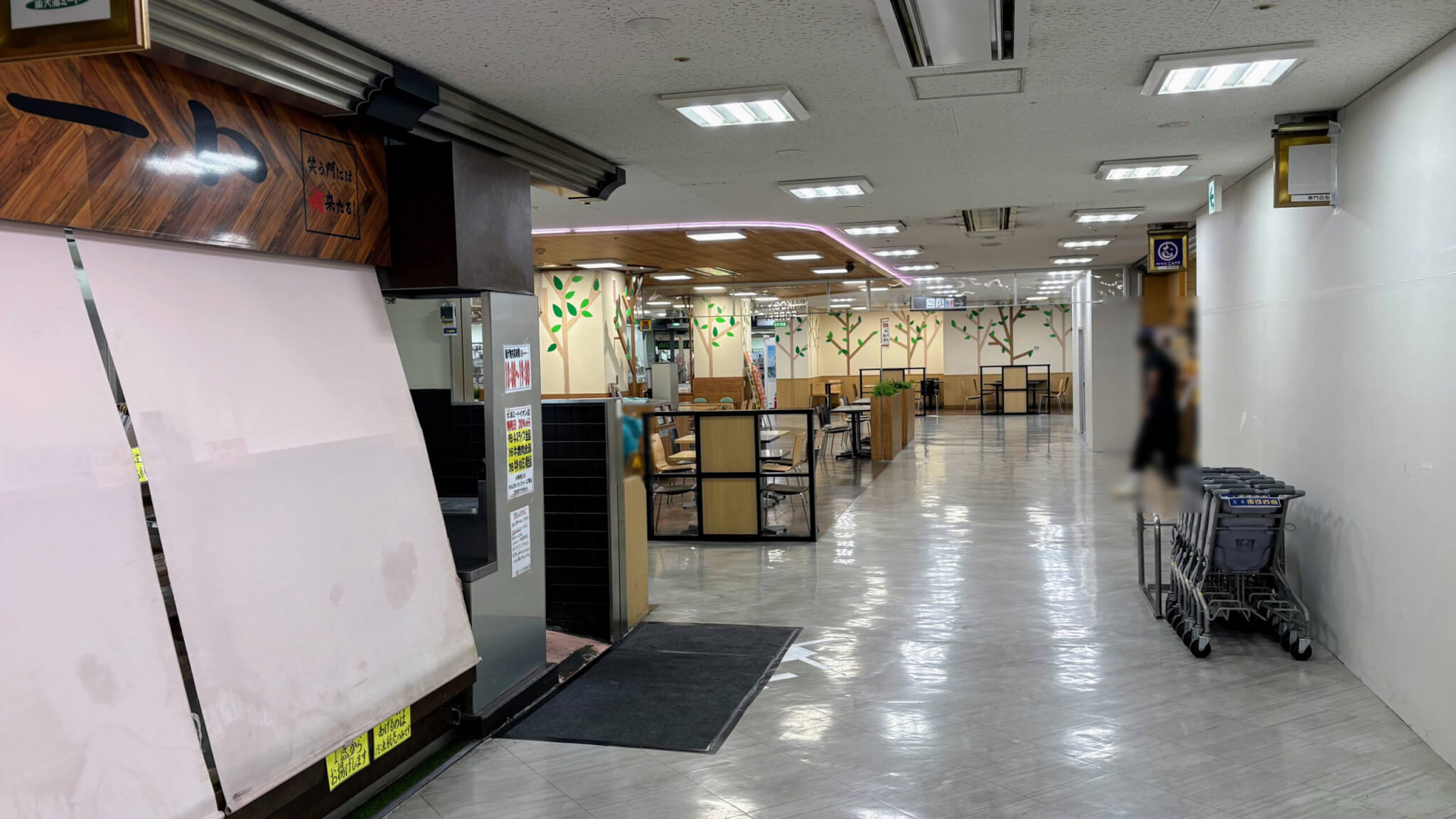フードコートも閉まっているテナントが目立ちます。2026年4月6日撮影