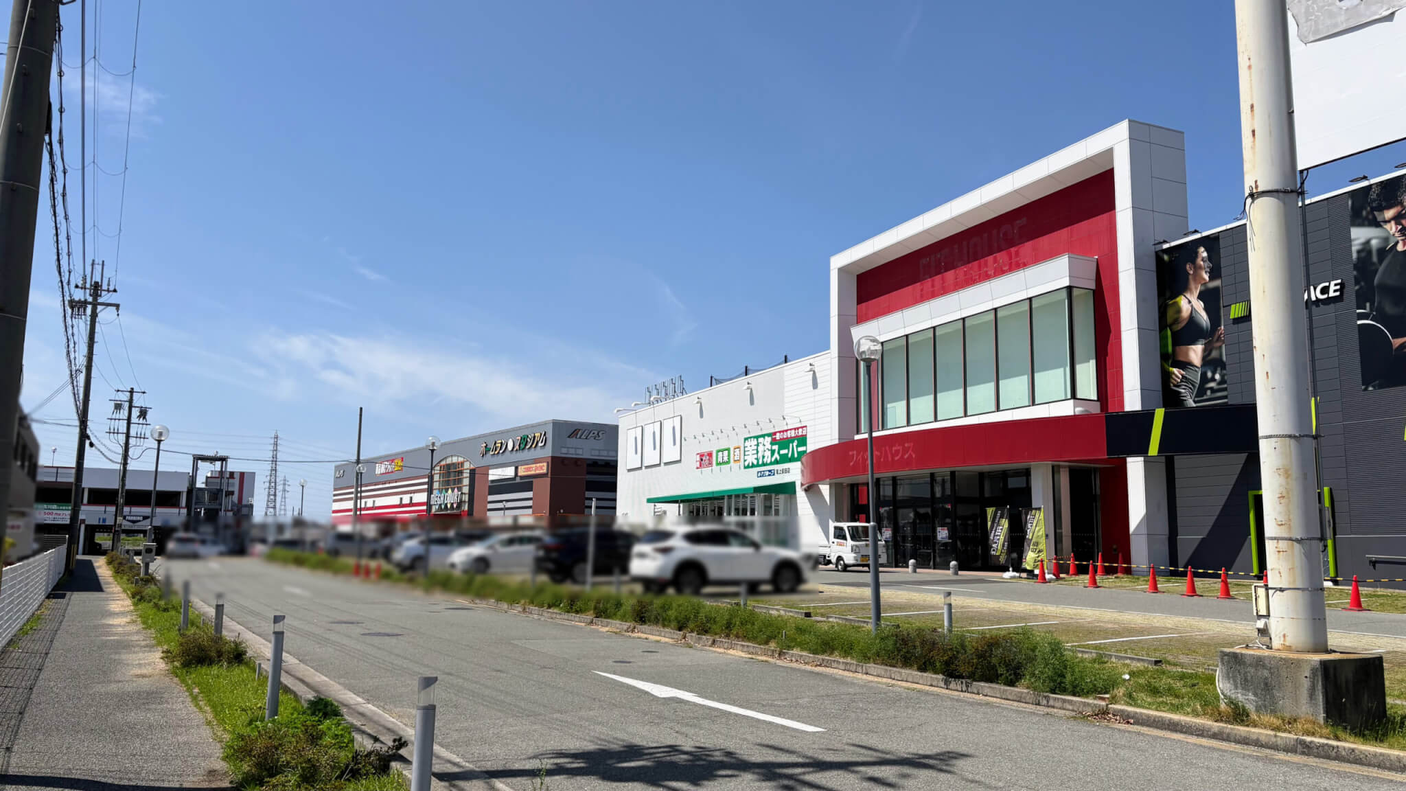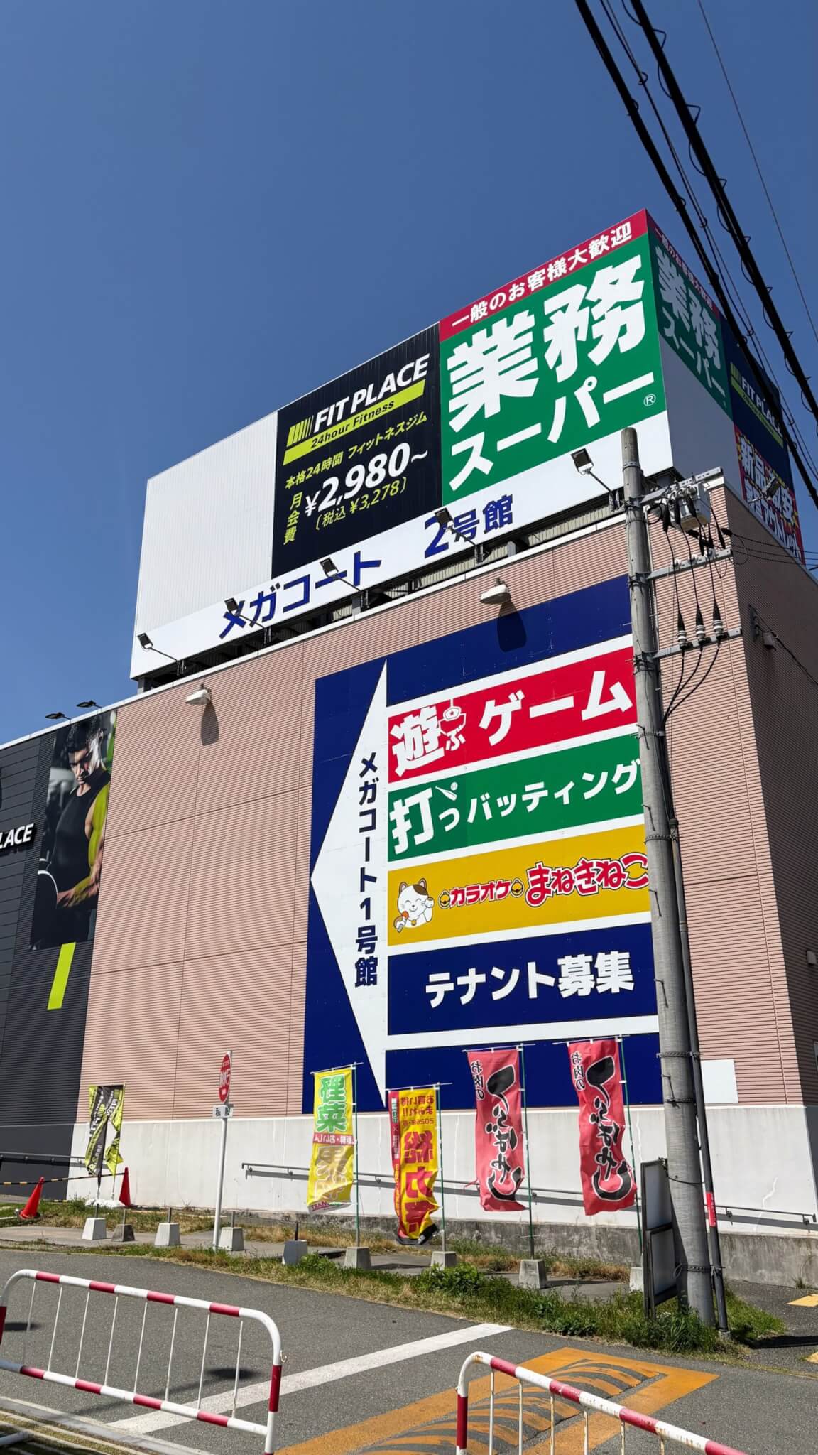 2025年8月にオープンした業務スーパー尾上安田店もあります。そちらの建物がメガコート2号館。BIGバリューが入るのはメガコート1号館です。