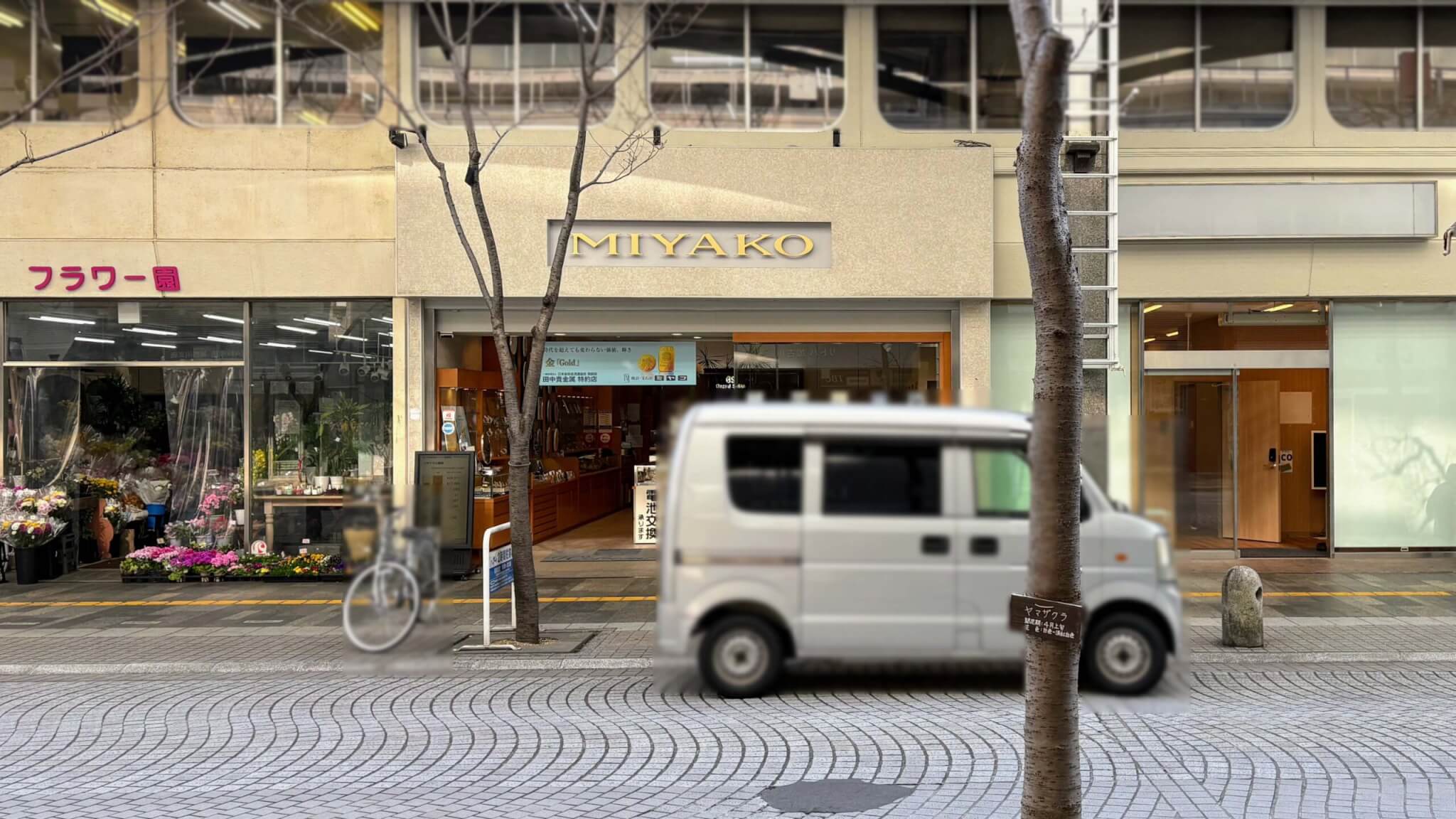 時計・宝石のミヤコの隣、以前はアイザワ証券があった場所です。
