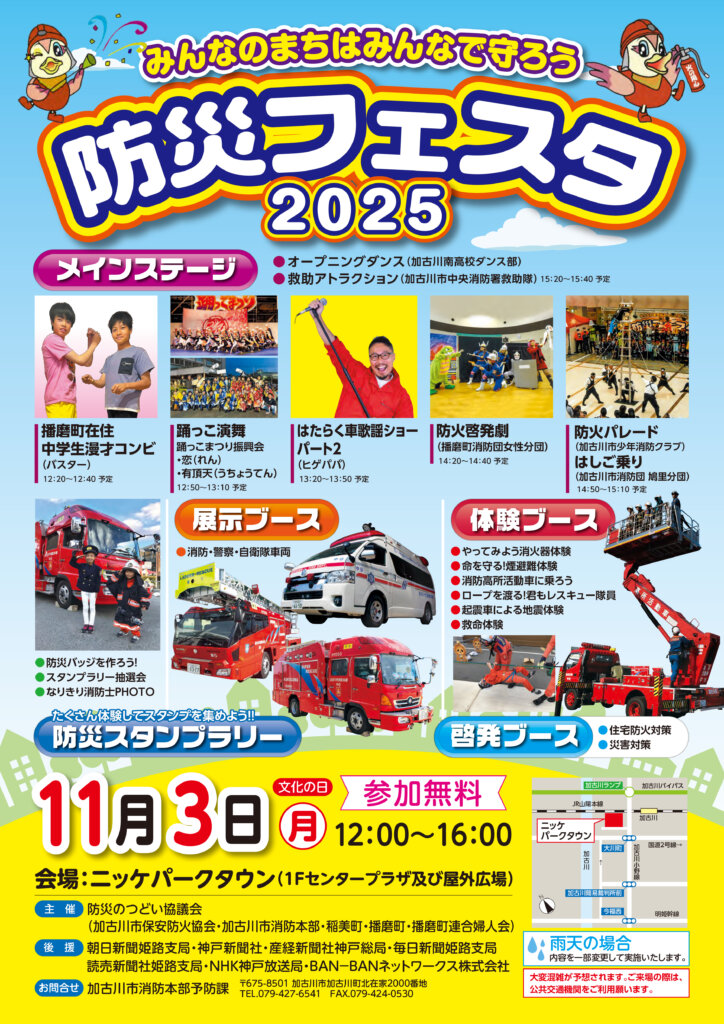 11/3(月・祝)防災フェスタ2025がニッケパークタウンで開催!消防高所活動車にも乗れる!2025年11月3日(月・祝)、ニッケパークタウン1Fセンタープラザおよび屋外広場にて、防災フェスタ2025が開催されます! 開催時間は12時から16時まで。参加無料です。 ... -