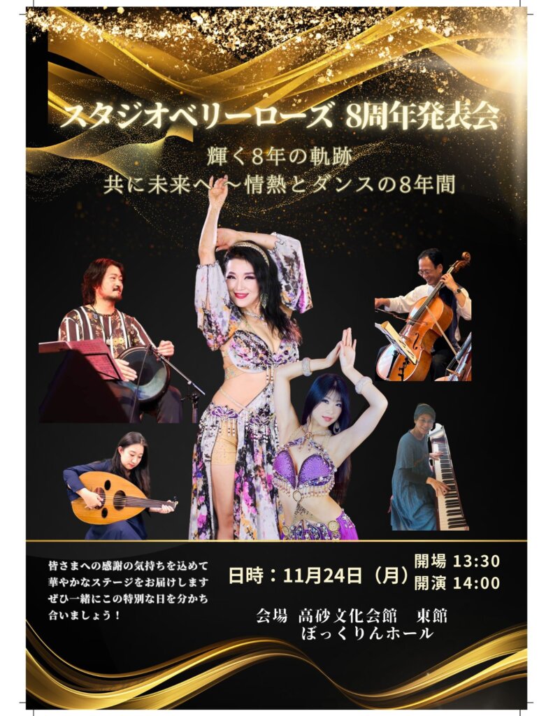 11/24(月・祝)スタジオベリーローズ 8周年発表会が高砂市文化会館東館ぼっくりんホールにて開催!【加古川のベリーダンススタジオ】2025年11月24日(月・祝)、高砂市の高砂市文化会館東館ぼっくりんホールにて、加古川のベリーダンススタジオ スタジオベリーローズの8周年発表会が開催されます! 開... -