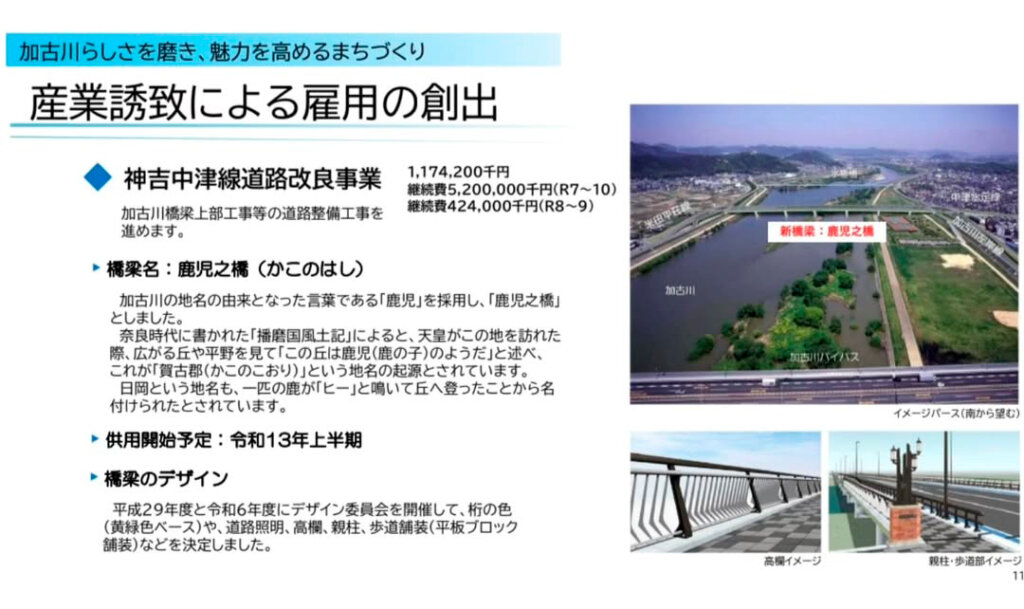 加古川に架かる新しい橋の名前は鹿児之橋(かこのはし)に決定!令和13年上半期供用開始予定!【神吉中津線】