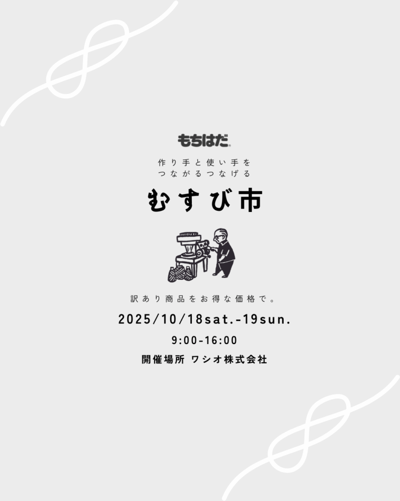 10/18(土)10/19(日)もちはだ直営店で「むすび市」を開催!ワシオ株式会社2025年10月18日(土)10月19日(日)の2日間、ワシオ株式会社本社のもちはだ直営店にて、むすび市が開催されます! 開催時間は9時から16時まで。 提供画像 もちはだは... -