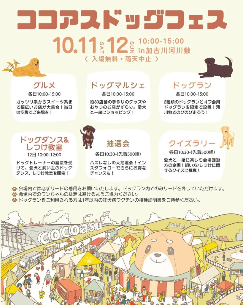 10/11(土)10/12(日)ココアスドッグフェスが加古川河川敷どうぶつの森広場付近にて開催!ドッグラン、ドッグマルシェ!2025年10月11日(土)10月12日(日)の2日間、加古川河川敷どうぶつの森広場付近にて、ココアスドッグフェスが開催されます! 開催時間は両日とも10時から15時まで。入... -