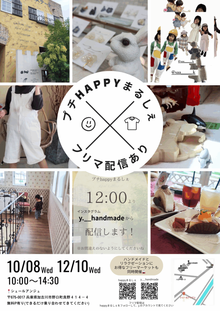 10/8(水)プチhappyまるしぇがシェールアンジュにて開催!10時-14時半2025年10月8日(水)、野口町良野のケーキ屋さんシェールアンジュにて、プチhappyまるしぇが開催されます! 開催時間は10時から14時半まで。 作家さんや、salonの方に... -