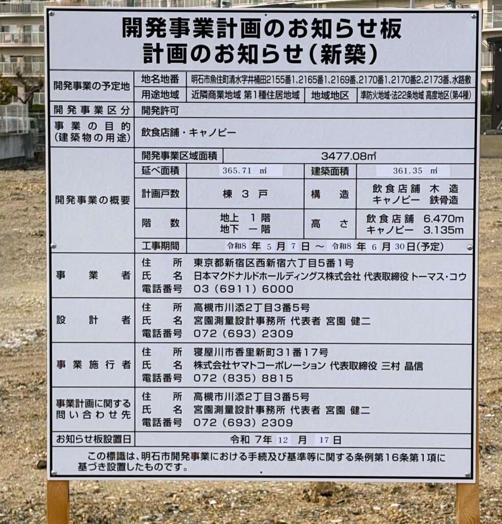 【開店】土山駅近くの国道2号線沿いに新しいマクドナルドを建築予定!【住所は明石市】JR土山駅から山側の国道2号線沿いに、新しいマクドナルドを新築すると看板が出ていました! 加古川市内から土山交差点を越えて明石市魚住町清水に入ってすぐの場所です... -